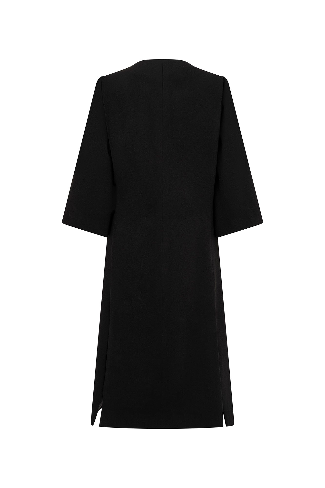 Elegante, contemporáneo y de textura suave. Con su diseño de manga campana y una abertura frontal, este abrigo combina funcionalidad y estilo.