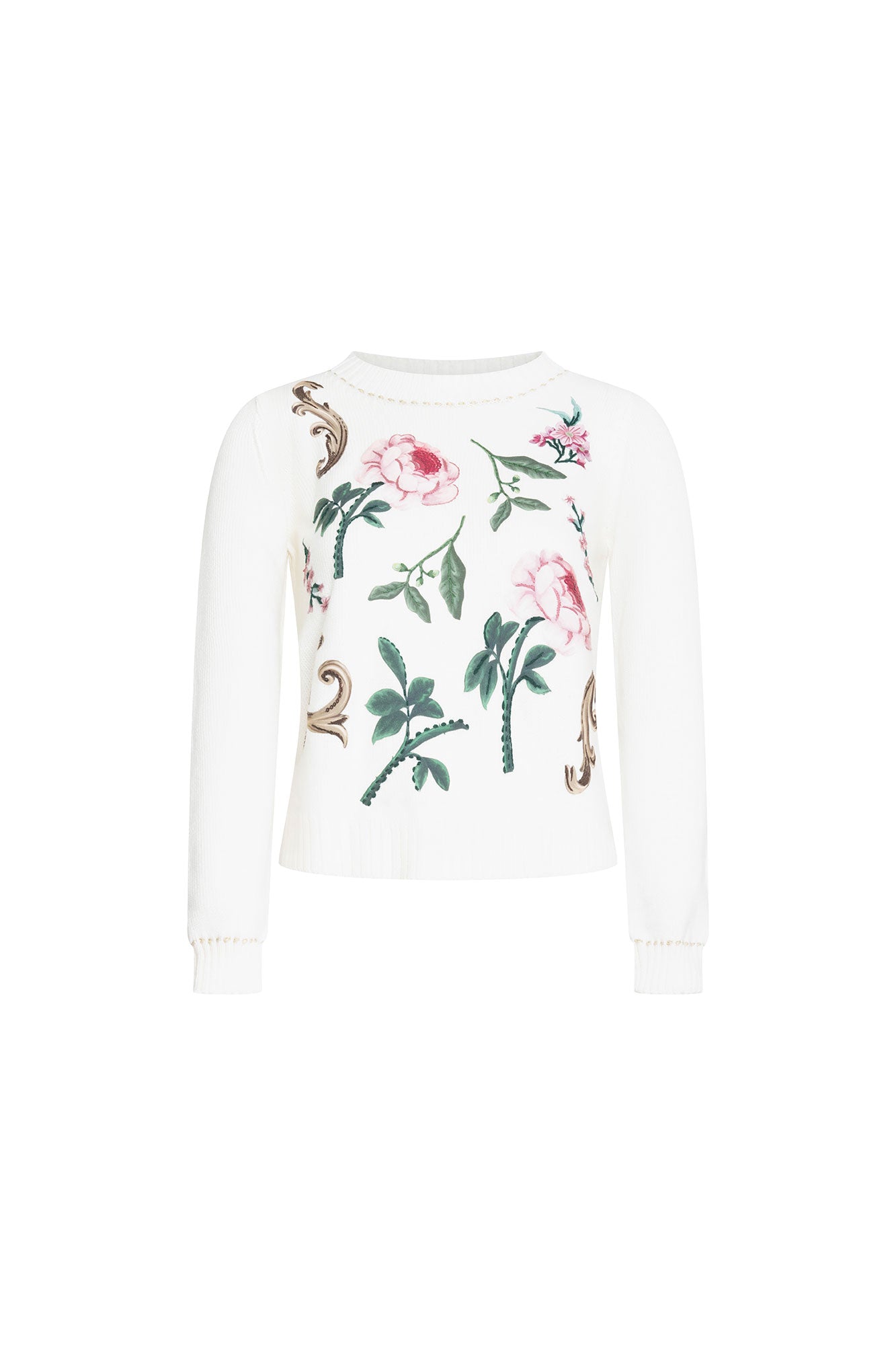 Confeccionado en tejido suave y abrigador, ideal para climas fríos. Su diseño de silueta clásica se realza con ilustraciones florales delicadas que aportan un toque femenino y sofisticado. Una prenda versátil, perfecta para elevar looks cotidianos o complementar conjuntos más elegantes.