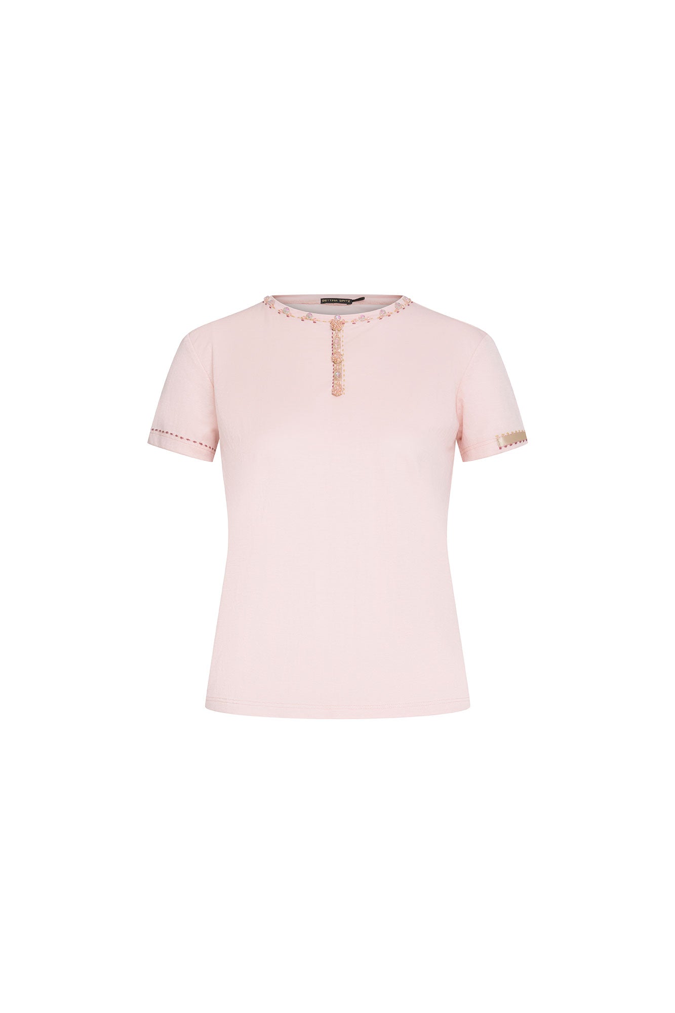 T-SHIRT BASIC PERILLA BOTONES ROSADO