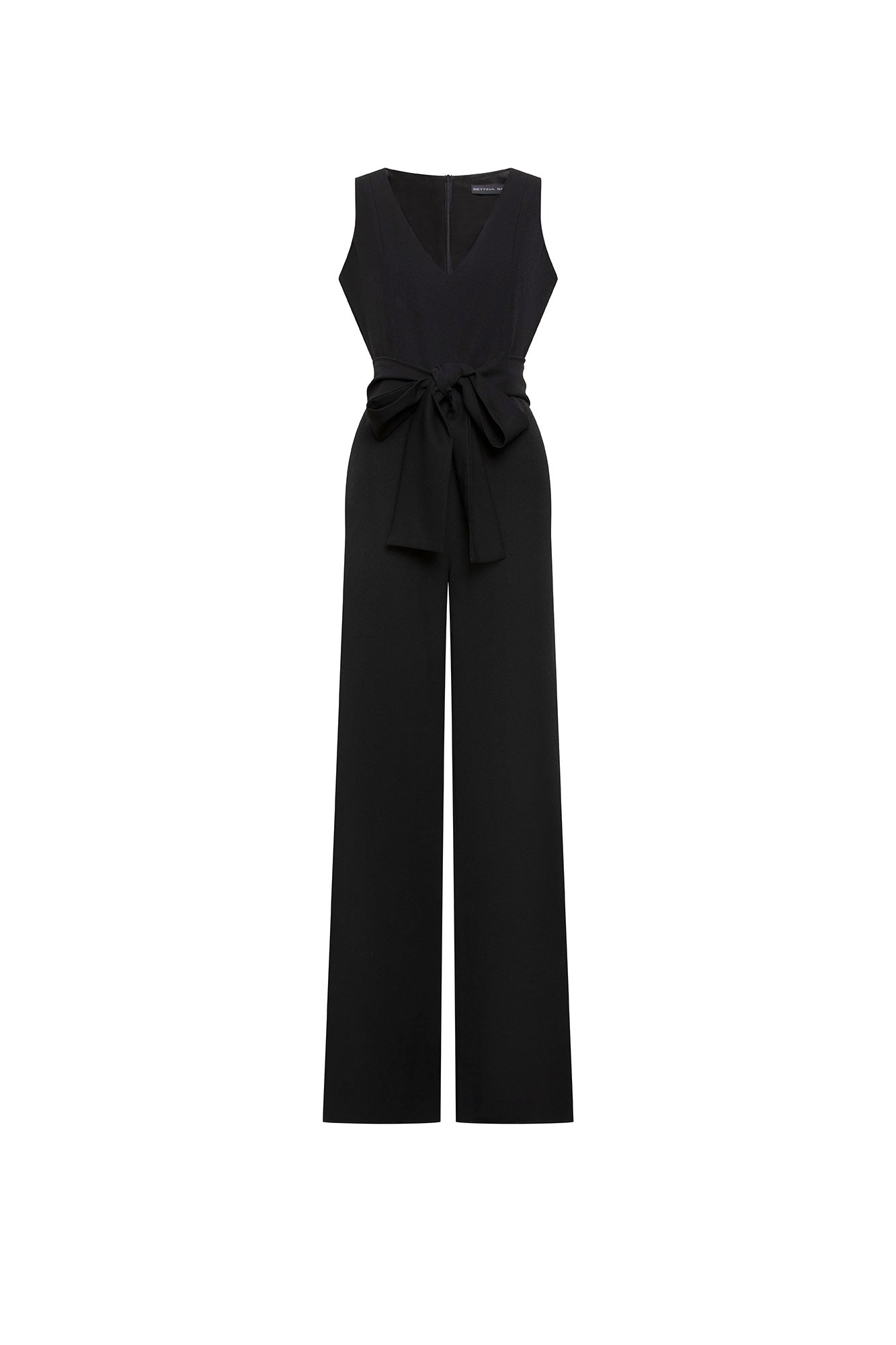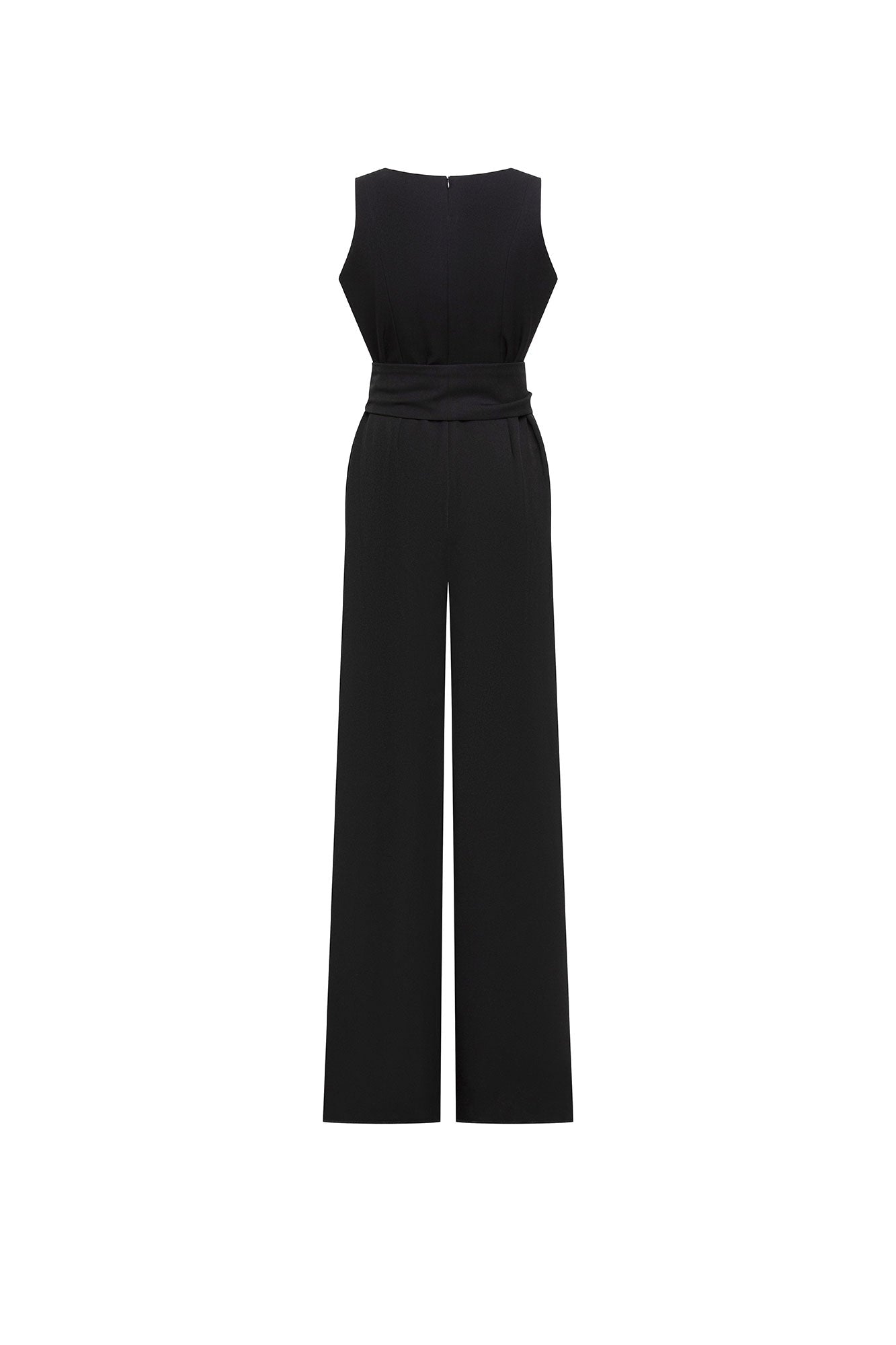 Enterizo sisa con escote en V profundo y corte de bota amplia, acompañado de un cinturón ajustable de cinta. Acompañado de un cinturón ajustable de cinta, este diseño es perfecto para realzar la figura con comodidad.