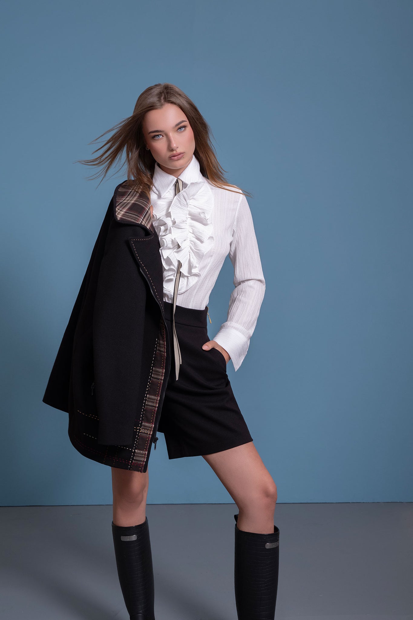 Prenda esencial reinterpretada con precisión y carácter. Combina la estructura clásica del tailoring con un fit relajado y femenino. Su silueta recta y caída fluida la convierten en un básico versátil para looks formales o casuales con un toque sofisticado. Ideal para acompañar blusas de volumen o chaquetas de textura.